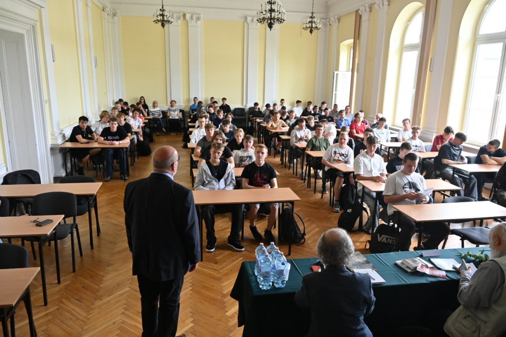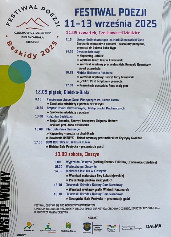 W dniu 12 września bieżącego roku na auli naszej szkoły miało miejsce spotkanie z poetami w ramach "Festiwalu Poezji Beskidy 2025". Było nam niezmiernie miło gościć tak znamienitych artystów, tym bardziej, że spotkania w mechaniku stały się już naszą nieodzowną tradycją. Wśród gości pojawili się: Pan Ryszard Grajek (poeta, animator kultury oraz inicjator festiwalu), Pani Bożena Boba - Dyga, Pani Agnieszka Mędrzak - Sikora, Pan Marcin Hanuszkiewicz, Pan Jan Picheta oraz Pan Piotr Zemanek. Nasi uczniowie mieli niepowtarzalną okazję obcować z magnetycznym słowem poezji, gdyż wiersze były czytane na żywo przez samych autorów. Utwory poruszały nie tylko tematy metafizyczne, ale również zawierały głębokie i trafne refleksje dotyczące tak uniwersalnych tematów, jak: życie, miłość czy przemijanie. Już dziś zapraszamy Państwa na kolejną edycję Festiwalu Poezji - do zobaczenia za rok!
