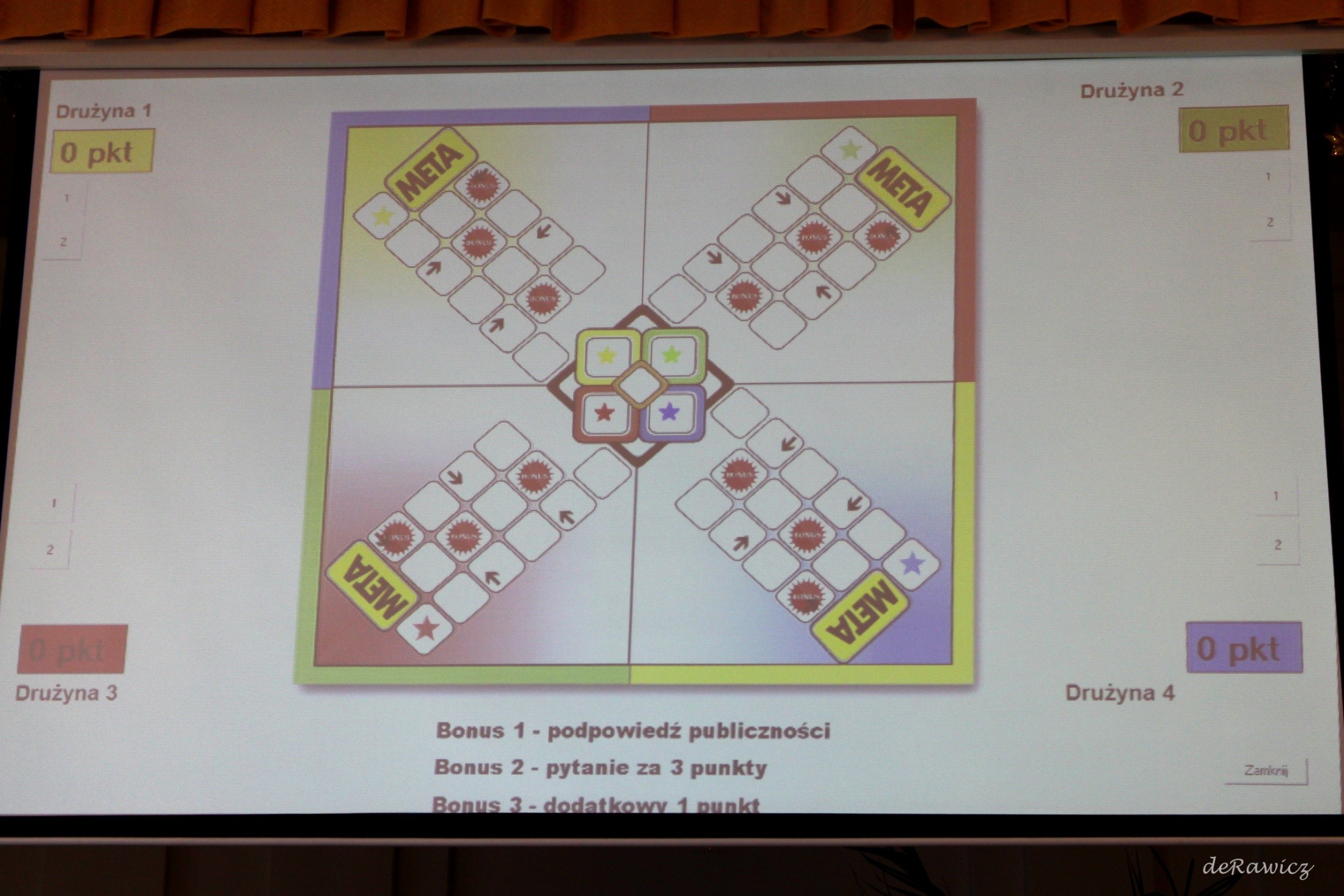 - Drużyna, która pokona wszystkie grupy na poszczególnym etapie w grze planszowej wygrywa cały Konkurs.