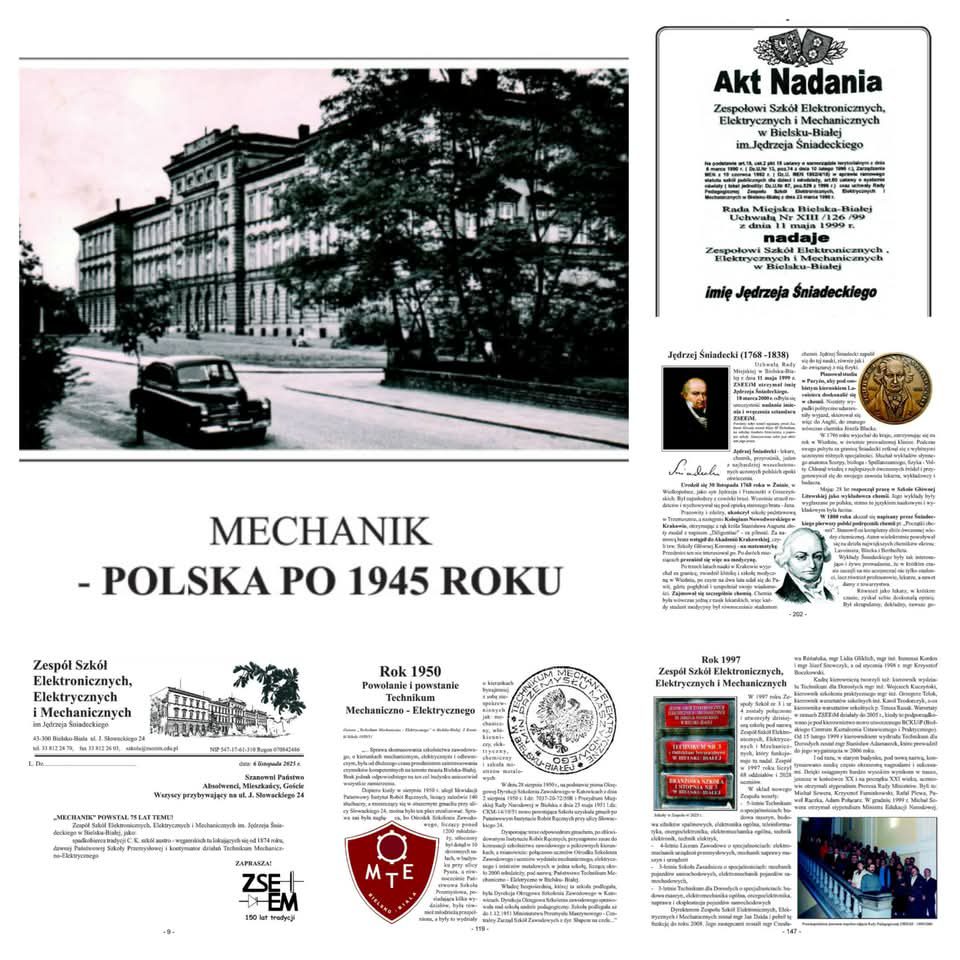 Z okazji jubileuszu nauczyciel historii mgr Jacek Trzeciak opracował i wydał książkę poświęconą dziejom szkolnictwa bielskiego, szkołom lokującym się w budynku obecnego "Mechanika" od 1874 roku. Szczególną uwagę autor poświęcił historii powstania oraz rozwoju „Mechanika”, jego dynamicznemu rozwojowi na przestrzeni kolejnych dekad, a także zachodzącym zmianom organizacyjnym i programowym.