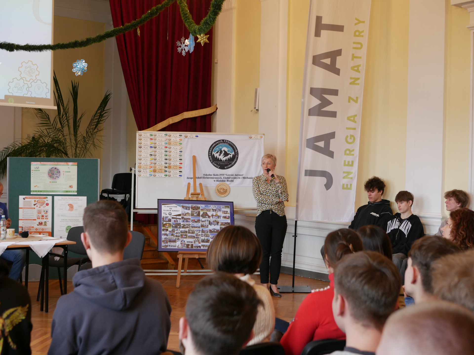 W spotkaniu brali udział uczniowie szkoły oraz nauczyciele. Byli również obecni przedstawiciele instytucji, z którymi podejmujemy wspólne działania: Punktu 11, Książnicy Beskidzkiej i Biura Karier UBB.