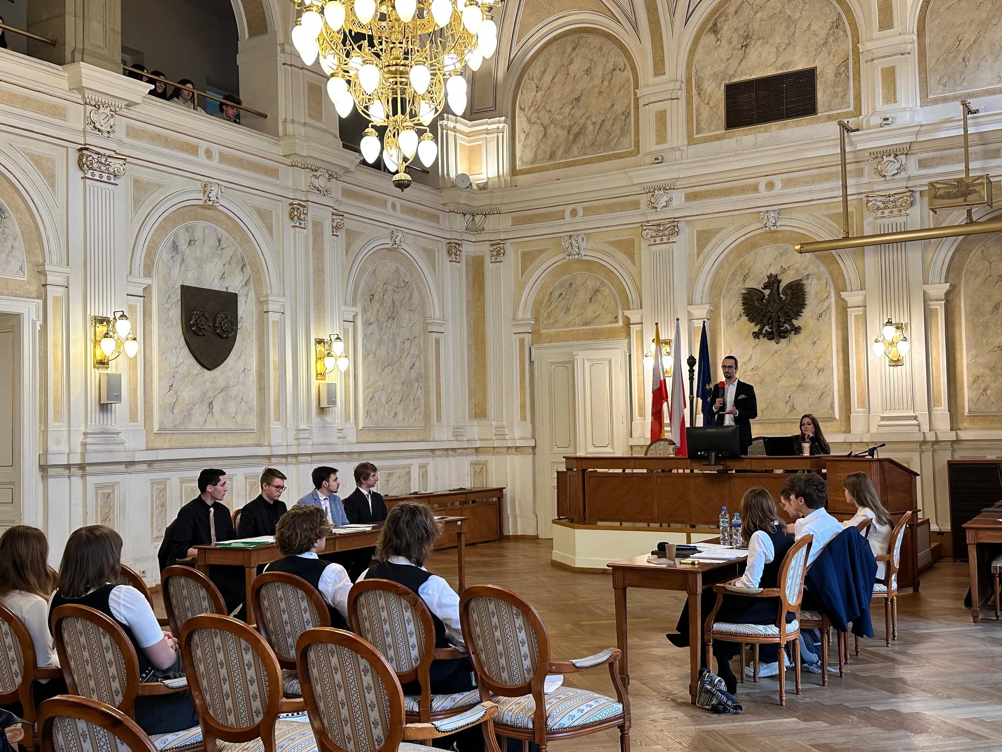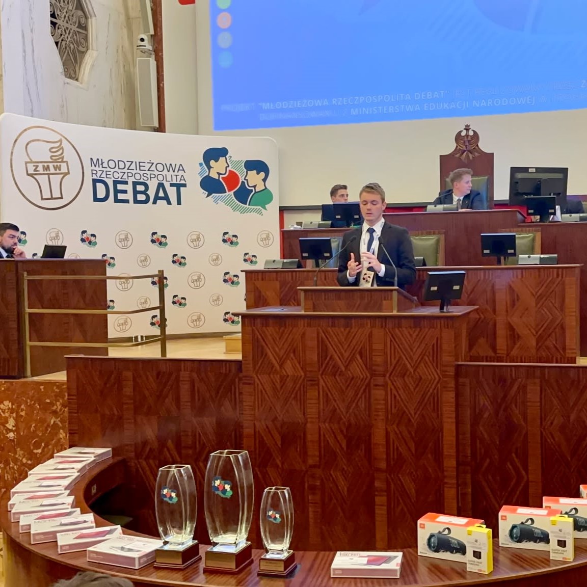 Dużym sukcesem był nasz udział w Wojewódzkim Finale Projektu „Młodzieżowa Rzeczpospolita Debat”, który odbył się 21 listopada 2025 roku w niezwykłej Sali Sejmu Śląskiego w Urząd Marszałkowski Województwa Śląskiego w Katowice. W konkursie „Młodzieżowa Rzeczpospolita Debat” zdobyliśmy I miejsce wśród najlepszych drużyn województwa śląskiego, co było dla nas ogromnym wyróżnieniem i potwierdzeniem wysokiego poziomu naszych debat.