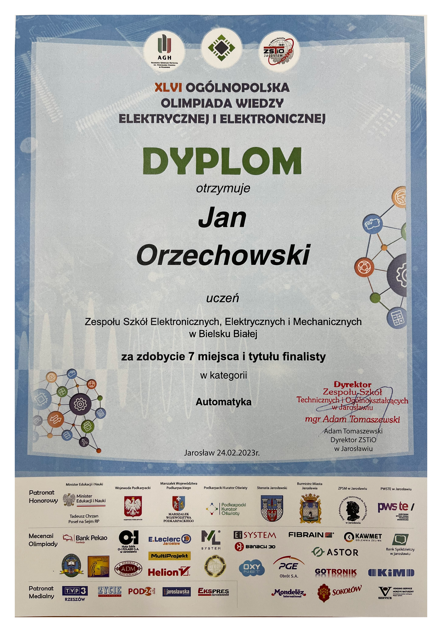 Systematyczne sukcesy naszych uczniów w prestiżowych olimpiadach potwierdzają, że szkoła skutecznie wspiera rozwój młodych talentów technicznych, przygotowując ich zarówno do studiów na najlepszych uczelniach w Polsce, jak i do przyszłej kariery w nowoczesnych branżach technologicznych.