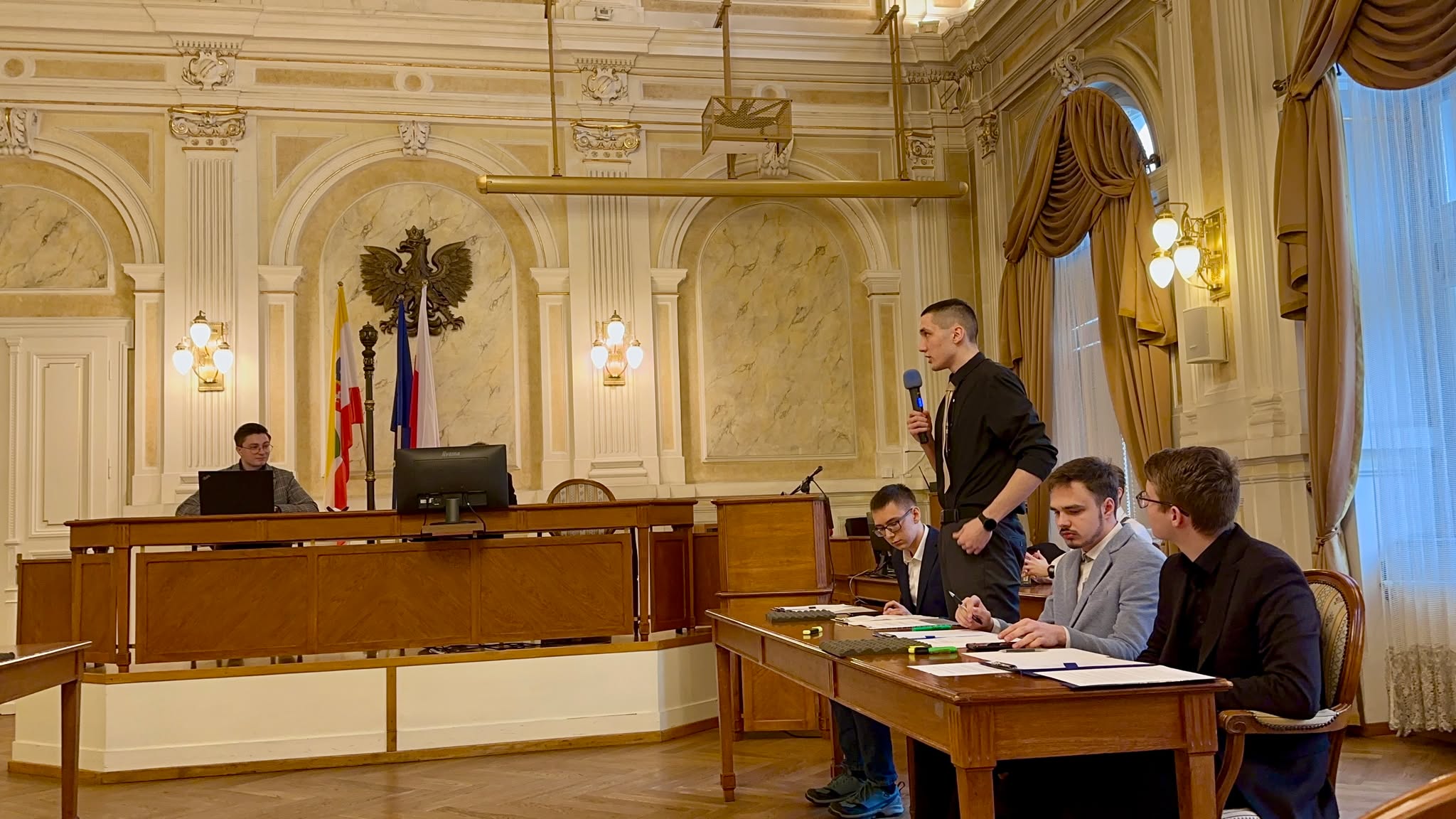 Dużym sukcesem był nasz udział w Wojewódzkim Finale Projektu „Młodzieżowa Rzeczpospolita Debat”, który odbył się 21 listopada 2025 roku w niezwykłej Sali Sejmu Śląskiego w Urząd Marszałkowski Województwa Śląskiego w Katowice. W konkursie „Młodzieżowa Rzeczpospolita Debat” zdobyliśmy I miejsce wśród najlepszych drużyn województwa śląskiego, co było dla nas ogromnym wyróżnieniem i potwierdzeniem wysokiego poziomu naszych debat.