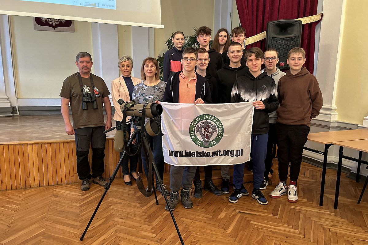 Członkowie Szkolnego Koła PTT „Górski Azymut” mieli także okazję spotkać się z ornitologiem oraz wziąć udział w prelekcji dotyczącej obserwacji i sposobów liczenia ptaków na obszarach ich naturalnego występowania.